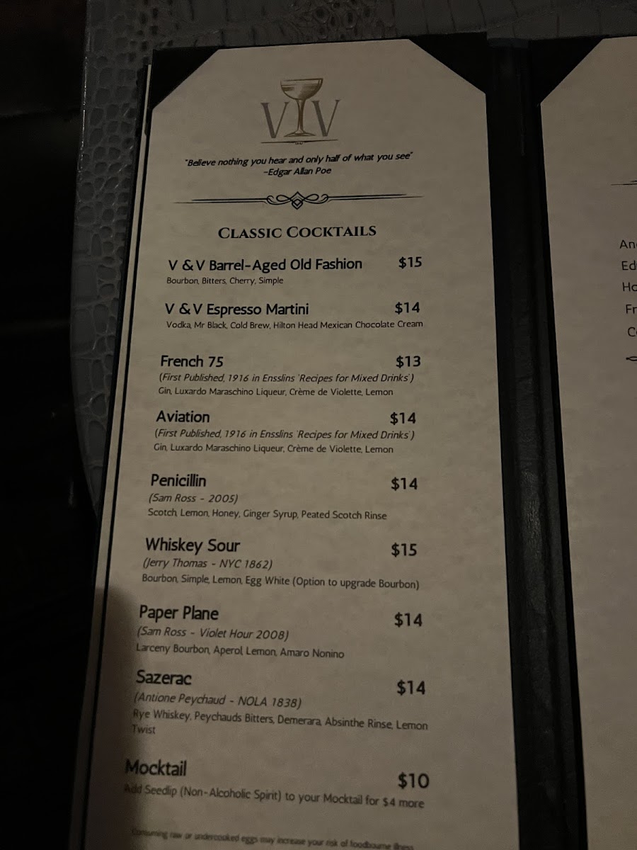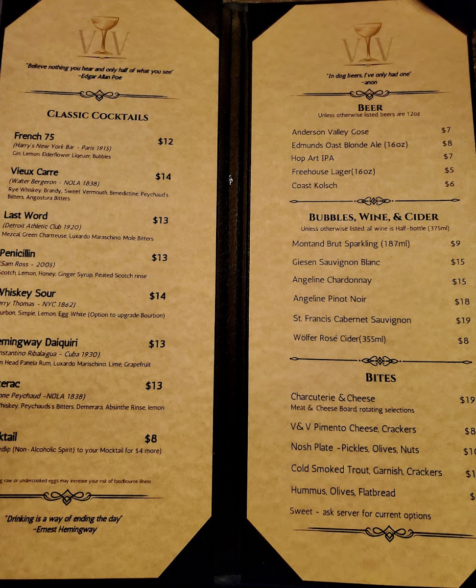 Guests rave about the V&V Dealer’s Choice, consistently highlighting the remarkable craftsmanship of the bartenders. The mixologists here aren’t just pouring drinks; they embody creativity and knowledge, turning each cocktail into an art form. Whether you’re enjoying one of their house favorites or engaging in a hands-on cocktail-making class, the experience is both memorable and educational.
